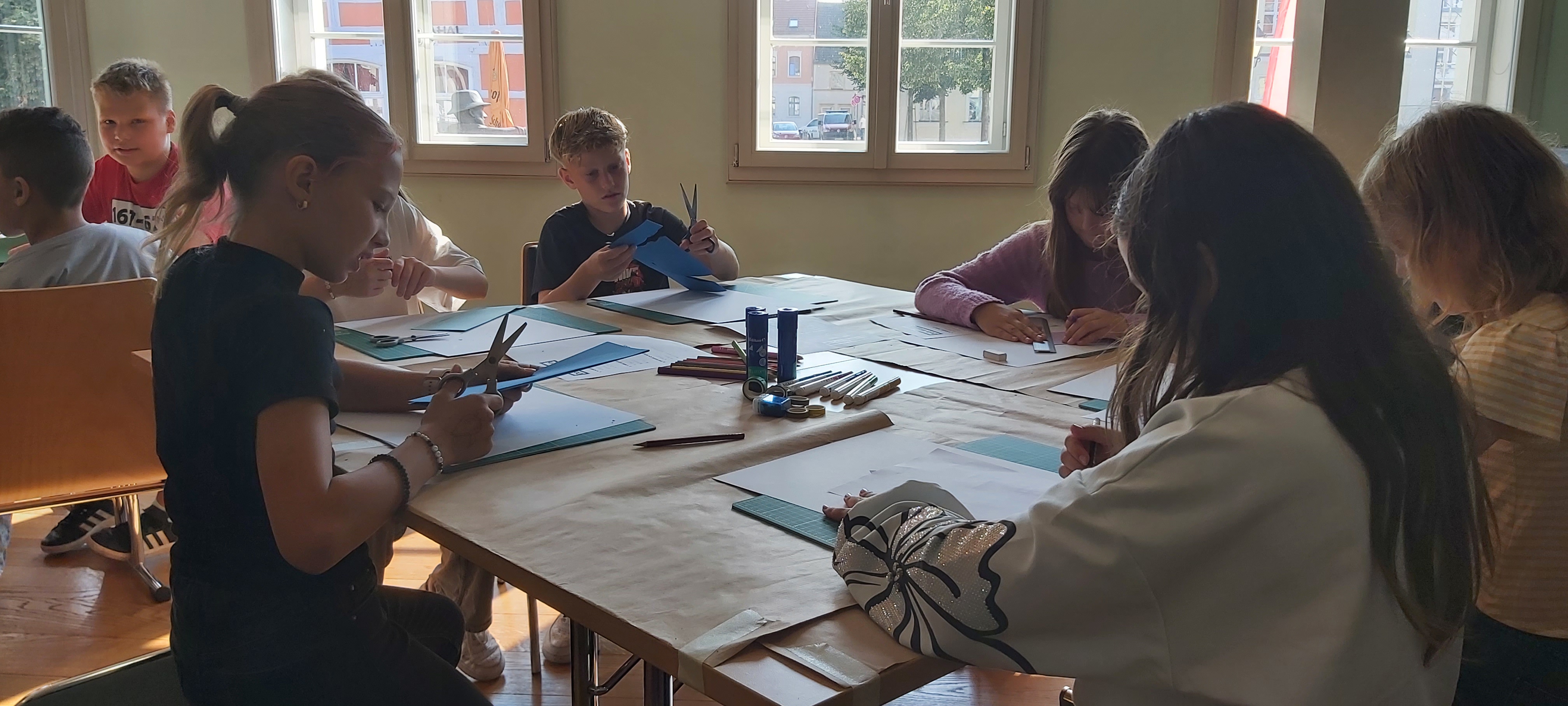 03.12.2025 Bereits am Anfang des Schuljahres besuchte die Klasse 5a das hiesige Stadtmuseum. Zuerst schauten sich die Schülerinnen und Schüler das Stadtwappen Angermündes an und lernten die Sage um Hirsch Hannibal kennen. Danach erstellten sie jeweils ihre persönlichen Wappen unter Anleitung der Museumspädagoginnen. Dabei fokussierten sie sich vor allem auf ihre Stärken und Vorlieben, über die sie später auch sprachen. Mehrere Wochen schmückten die Ergebnisse, also ihre Wappen, den Klassenraum der 5a. Ein anderer Ausflug führte die Kinder erneut ins Stadtmuseum: Der Stadtarchivar lud sie zu einer Museumsrallye ein, die sie zu einem Schatz führen sollte. Eifrig durchstreiften die Teilnehmerinnen und Teilnehmer die Räume des Museums auf der Suche nach weiteren Hinweisen, denen sie begeistert folgten. Mit etwas Hilfe konnten letztlich alle den Schokoladenschatz heben. Und sicher waren dies das nicht die letzten Veranstaltungen, die die Kooperation unserer Schule mit Stadtarchiv und Stadtmuseum festigen wird. Die 5a war jedenfalls begeistert.
