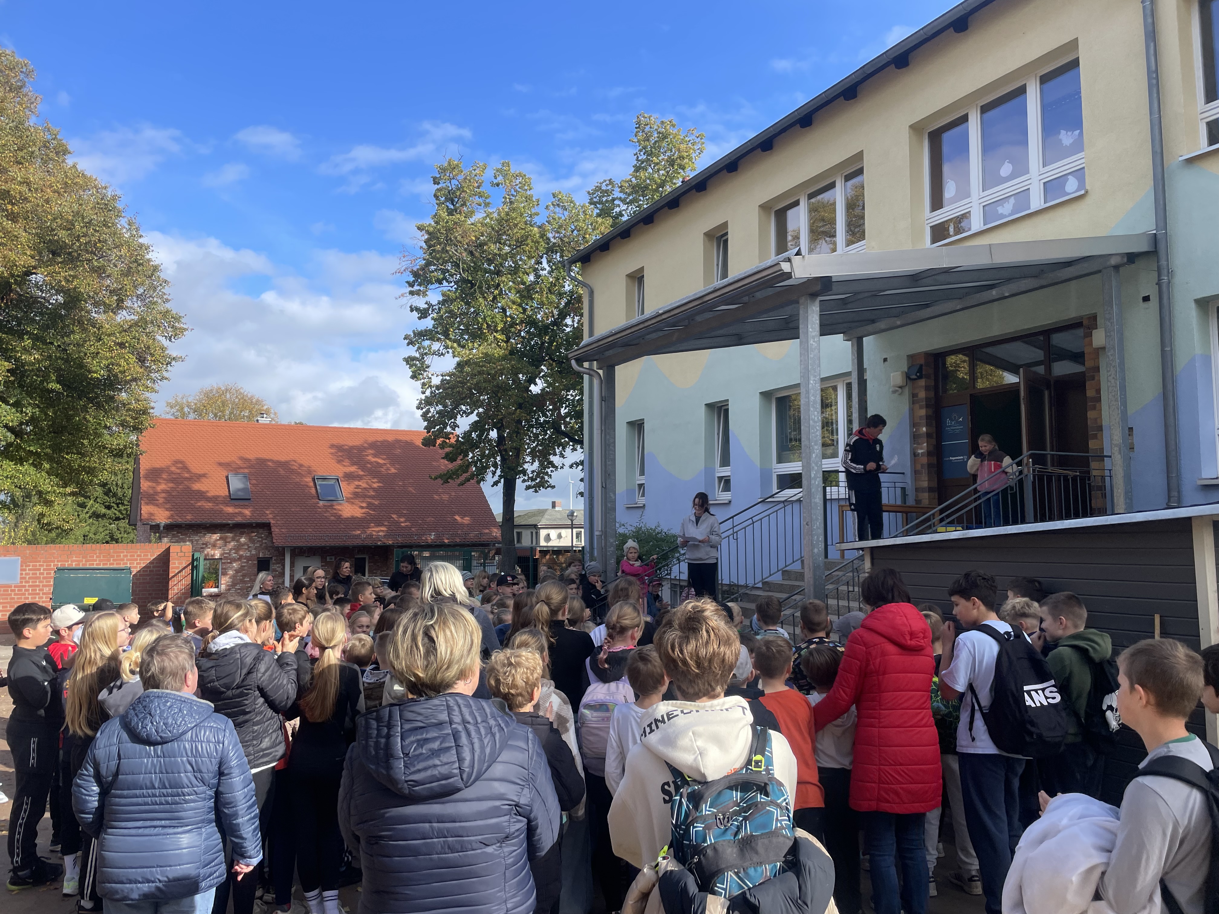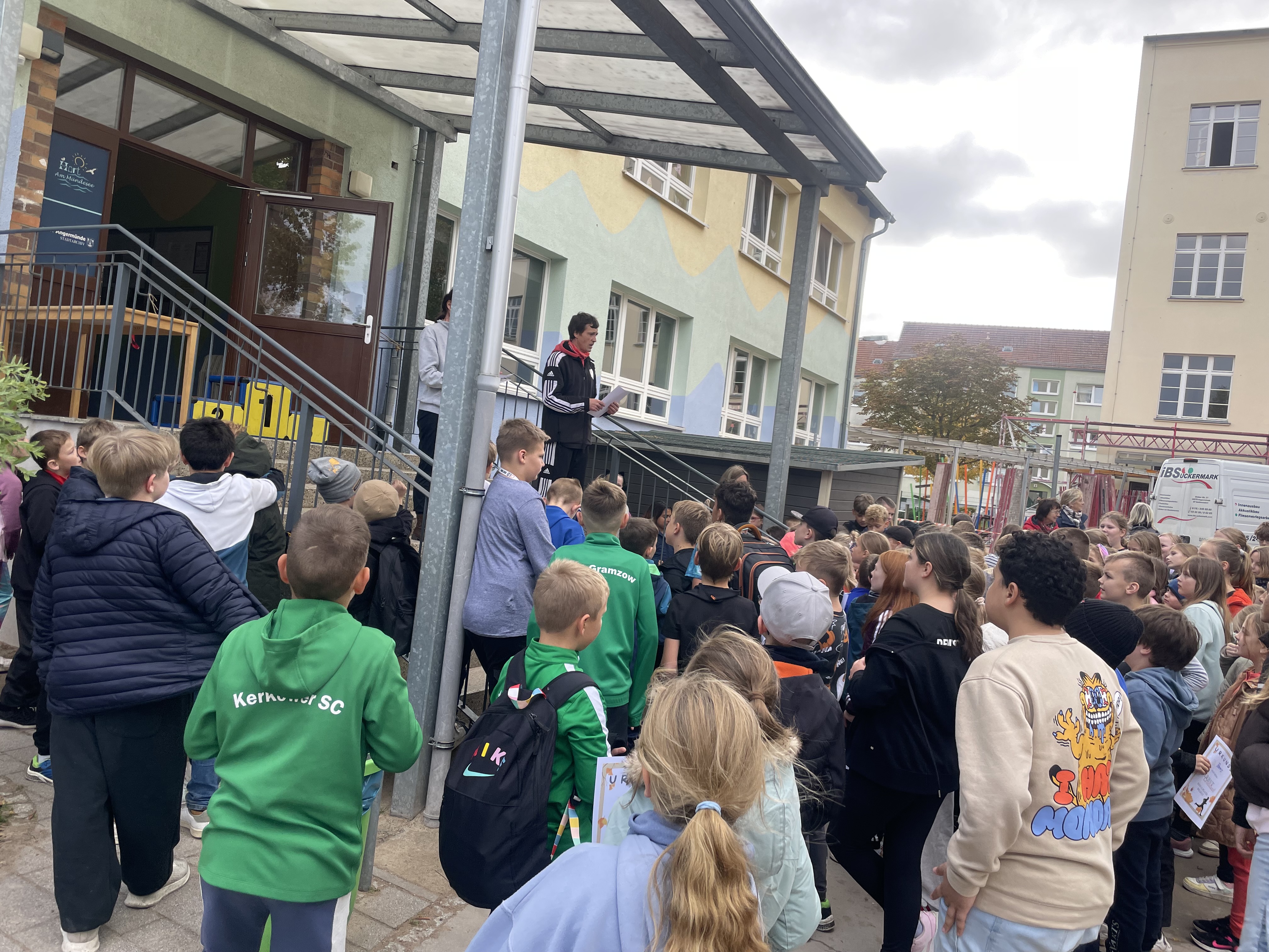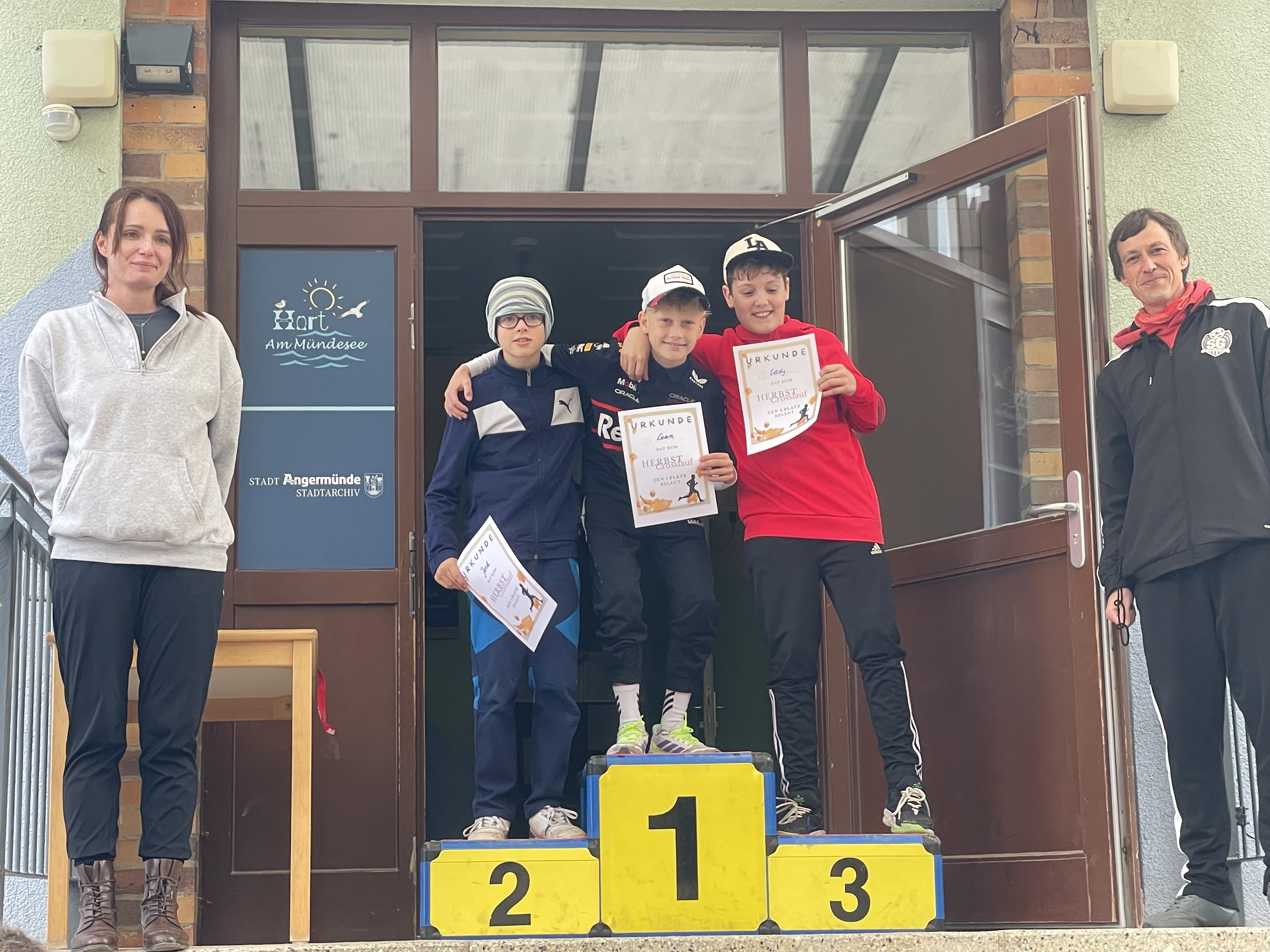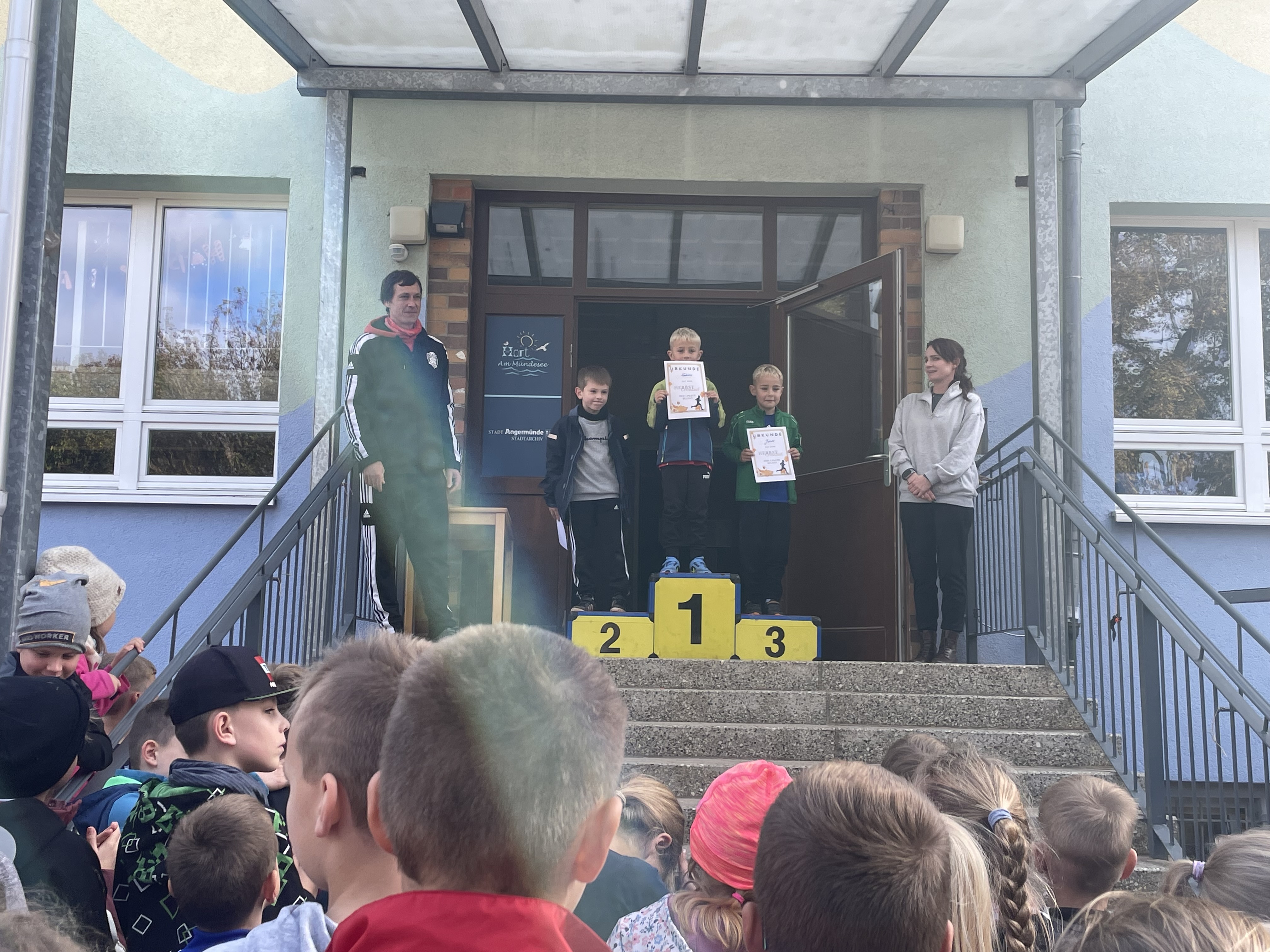 Am 17. Oktober 2025 fand unser traditioneller Crosslauf statt – in diesem Jahr wieder auf dem Gelände des Angermünder Bildungswerks.Typisches Herbstwetter erwartete uns: frische Luft, ein paar Wolken und Regentropfen, aber auch wärmende Sonnenstrahlen zwischendurch. Das konnte die Stimmung unserer Schülerinnen und Schüler jedoch nicht trüben – im Gegenteil! Schon beim Aufwärmen war die Aufregung und Motivation deutlich zu spüren. Mit viel Ehrgeiz, Freude und Durchhaltevermögen gingen alle Kinder an den Start – und das Wichtigste: Jede und jeder kam ins Ziel! Der Applaus und die Anfeuerungsrufe sorgten für eine tolle Atmosphäre auf der gesamten Laufstrecke. Da das Wetter am Ende etwas ungemütlicher war, verlagerten wir das gemeinsame Würstchenessen und die Siegerehrung kurzerhand auf unseren Schulhof. Dort wurden in jeder Jahrgangsstufe die Plätze 1 bis 3 getrennt nach Mädchen und Jungen geehrt – und alle Teilnehmenden konnten stolz auf ihre Leistung sein. Ein großes Dankeschön geht an unseren Förderverein, der das leckere Würstchenessen gesponsert hat, sowie an UM-Fleisch & Wild GmbH John Mai für die köstliche Zubereitung. Ebenso lieben Dank an die Klasse 6A für die Hilfe bei den Vorbereitungen, der Durchführung und beim Aufräumen. Habt ihr toll gemacht!