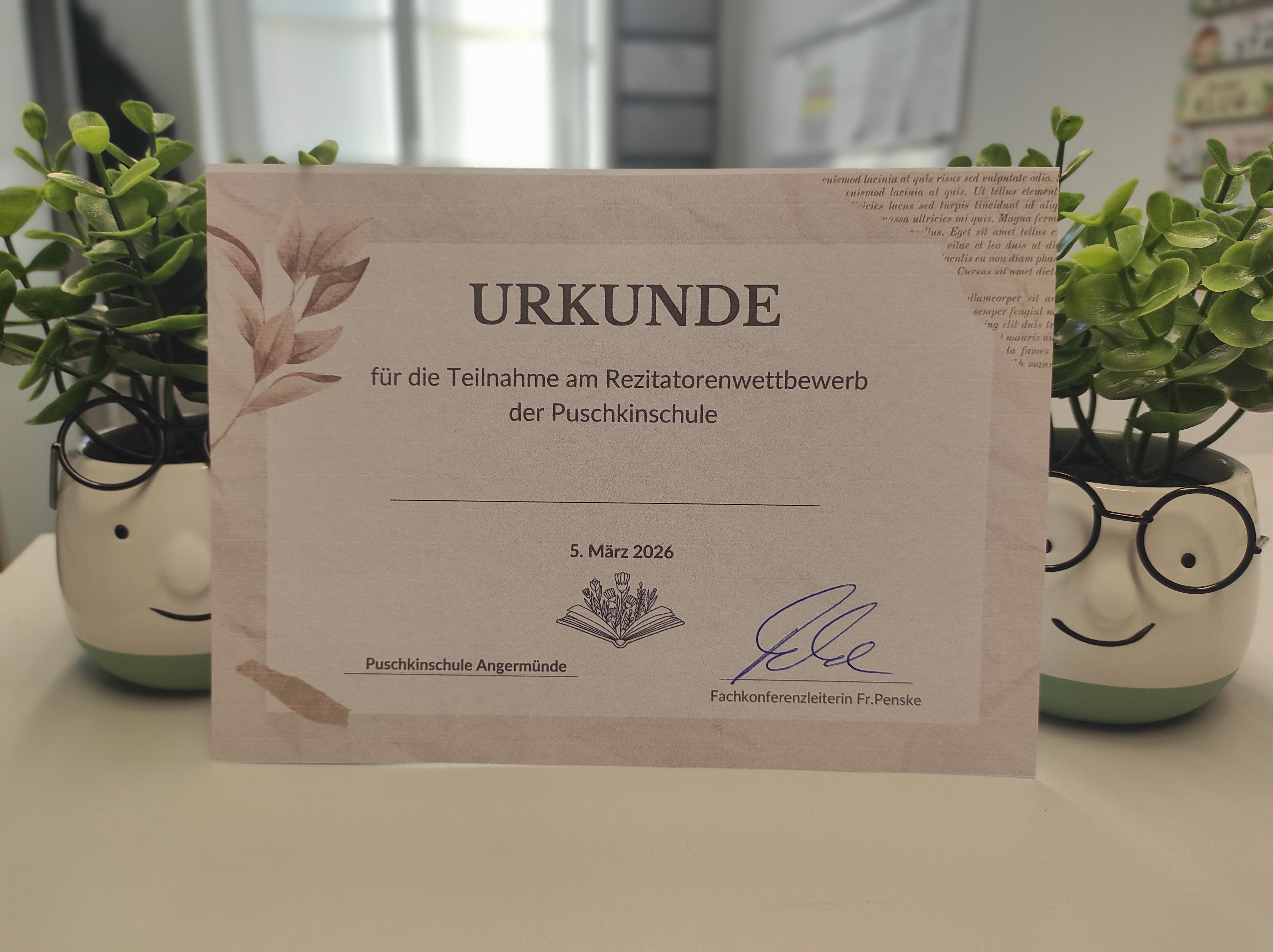 05.03.2026 In den vergangenen Wochen fanden an unserer Schule Gedichtvorträge in insgesamt zwölf Grundschulklassen statt. Viele Kinder haben sich intensiv vorbereitet, ihre Gedichte fleißig gelernt und sie mit viel Mut und Ausdruck vor der Klasse vorgetragen. Die jeweils besten Schülerinnen und Schüler aus den Klassen wurden anschließend zum Rezitatoren-Wettbewerb der Puschkinschule eingeladen, der heute bei uns stattfand. Dort präsentierten sie ihre Gedichte noch einmal vor Publikum und einer Jury. Es war beeindruckend zu sehen, mit wie viel Freude, Selbstbewusstsein und Talent die Kinder ihre Texte vorgetragen haben. Wir sind sehr stolz auf alle Teilnehmerinnen und Teilnehmer, die den Mut hatten, auf die Bühne zu gehen, um ihr Können unter Beweis zu stellen. Am Ende des Wettbewerbs wurden fünf Sieger gekürt, die unsere Schule beim kreislichen Rezitatoren-Wettbewerb der örtlichen Grundschulen, der in der Gustav-Bruhn-Schule stattfindet, vertreten werden. Wir gratulieren allen Kindern herzlich zu ihren tollen Leistungen und wünschen unseren fünf ausgewählten Rezitatorinnen und Rezitatoren viel Erfolg beim kommenden Ausscheid!