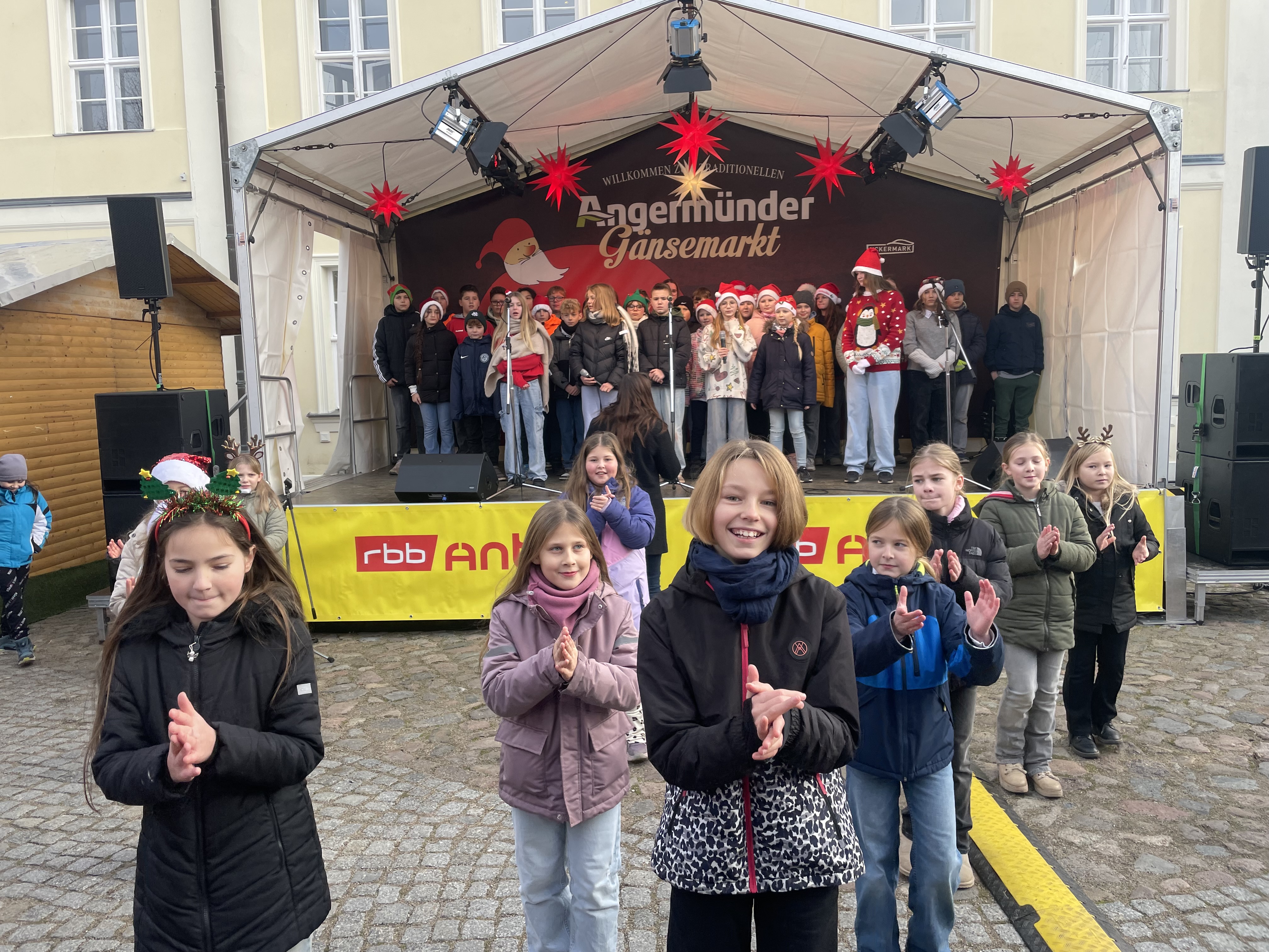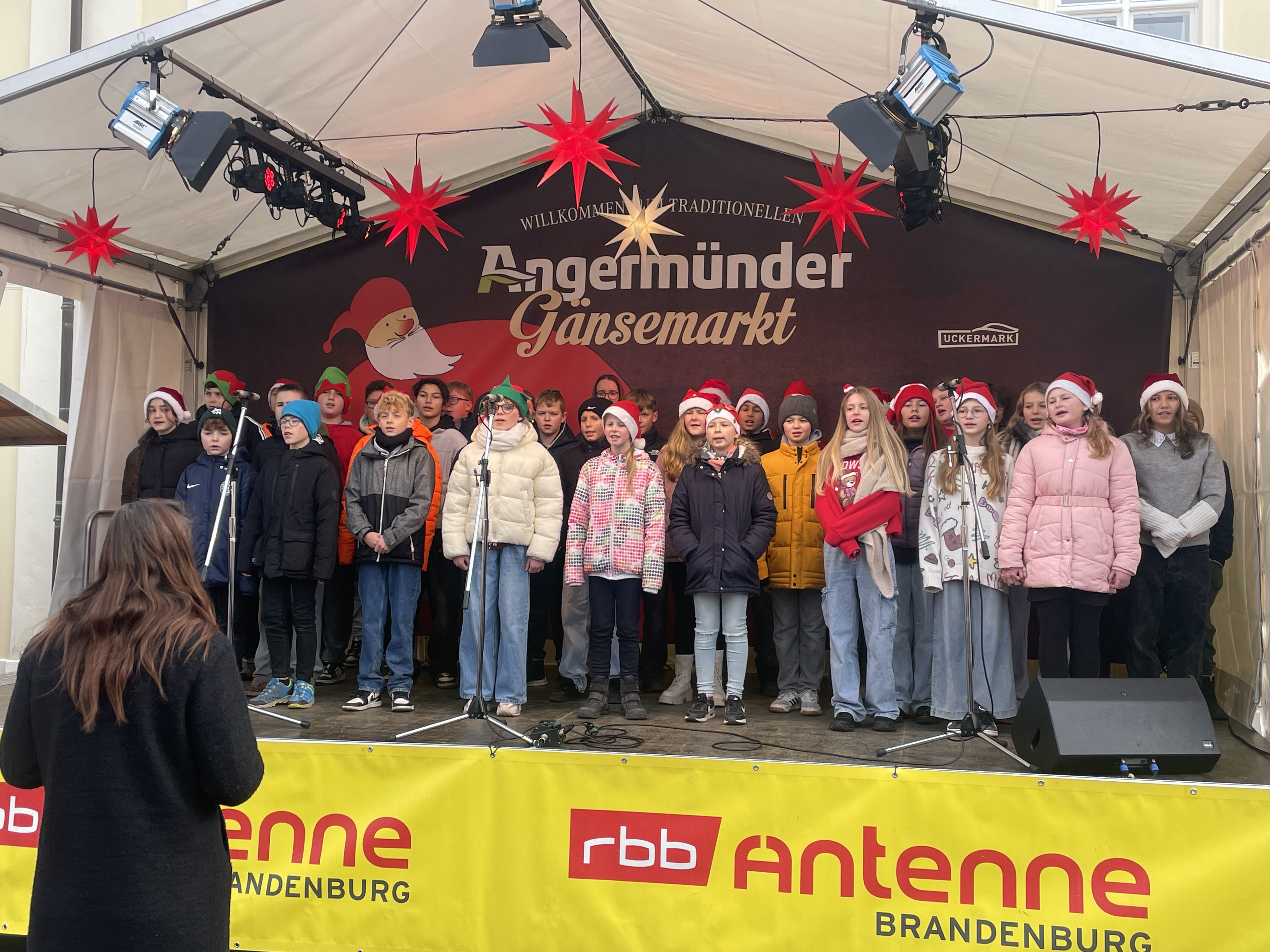 04.12.2025 Die Puschkinschule hatte heute die große Ehre, den Angermünder Weihnachtsmarkt – liebevoll auch Gänsemarkt genannt – feierlich zu eröffnen.